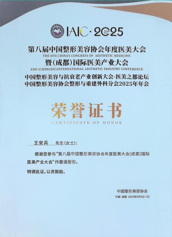 在本届大会上,王安兵肩负多重身份。作为新任青年专家委员会委员,他对此充满期待:“我特别希望年轻医美工作者能成为‘新一代医美人’,不仅要技艺精湛,更要具备学术素养和合规意识,理解每一个操作背后的医学原理与安全规范。”